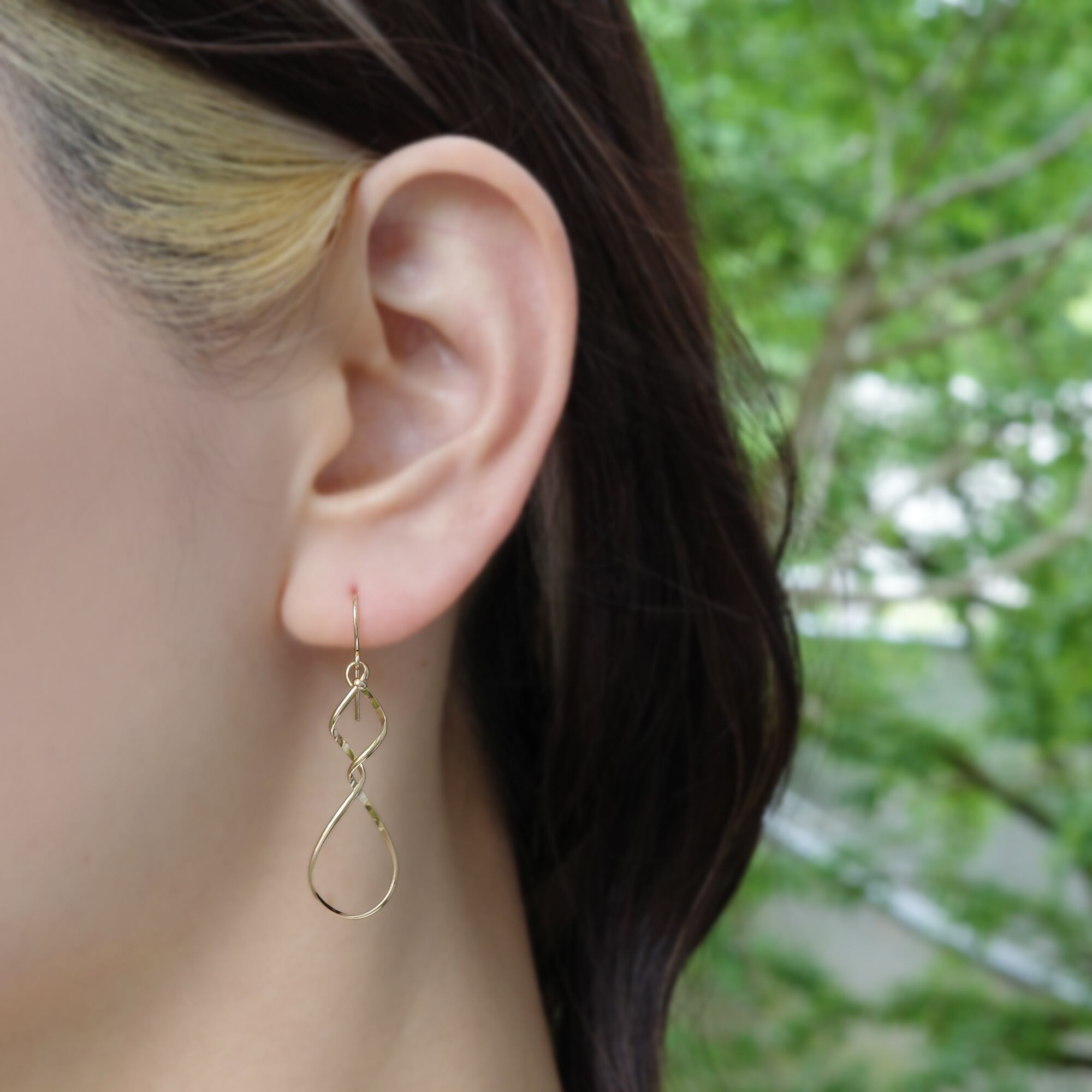 しなやかな金線のピアスは、ゆったりした動きや流れをつくり出し、顔周りを演出してくれます。カジュアルにもフォーマルにもシーンを選ばずお使いいただけます。