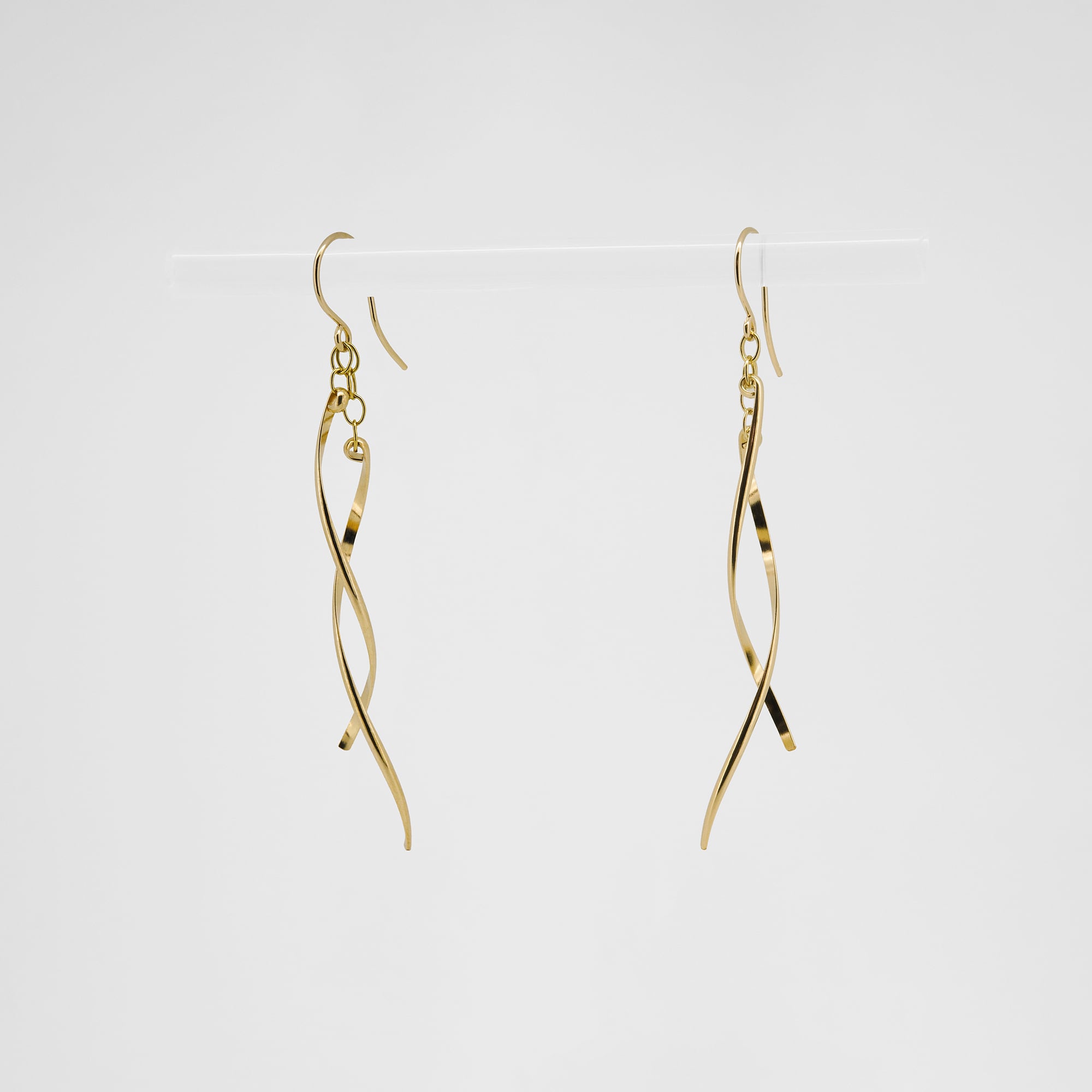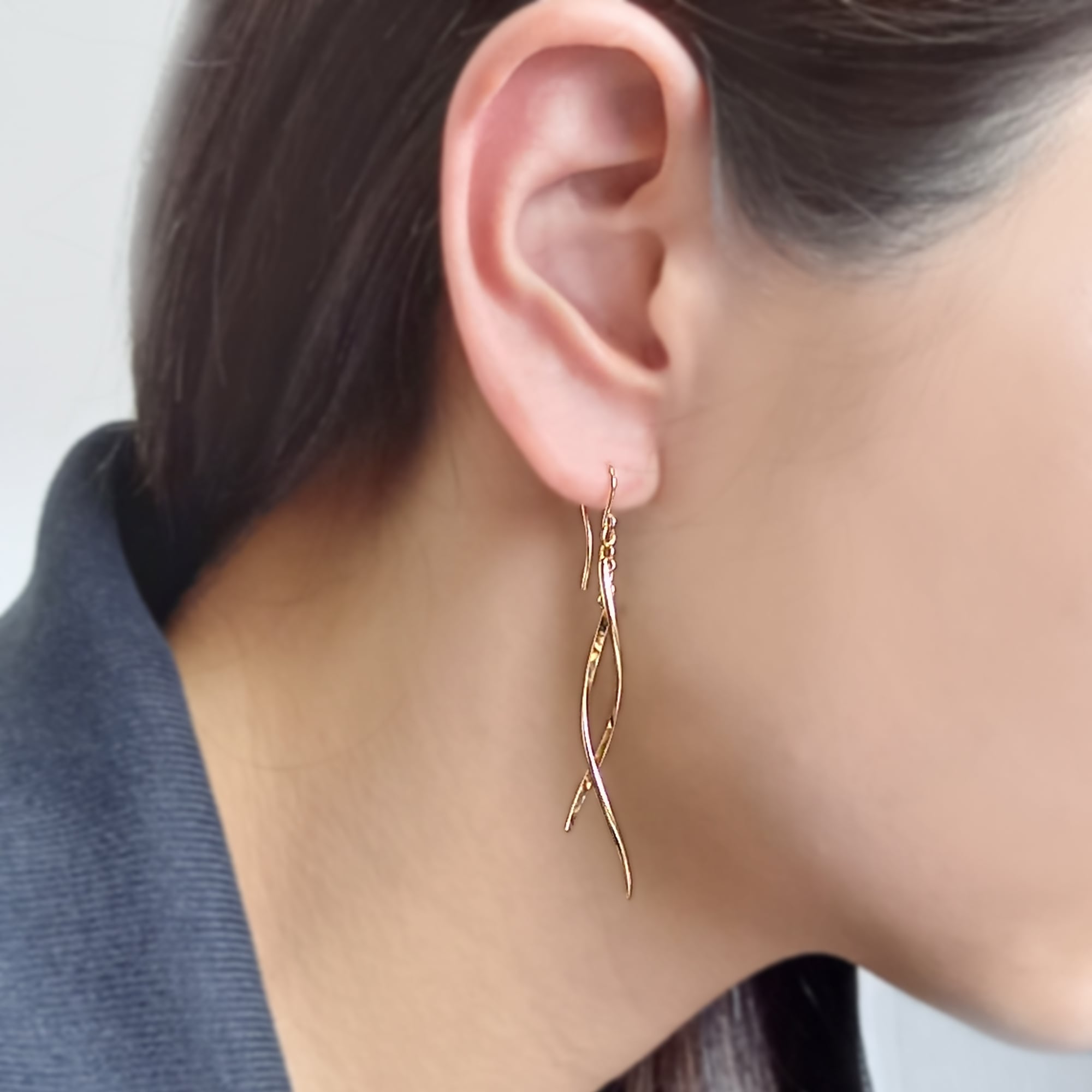 しなやかな金線のピアスは、ゆったりした動きや流れをつくり出し、顔周りを演出してくれます。カジュアルにもフォーマルにもシーンを選ばずお使いいただけます。