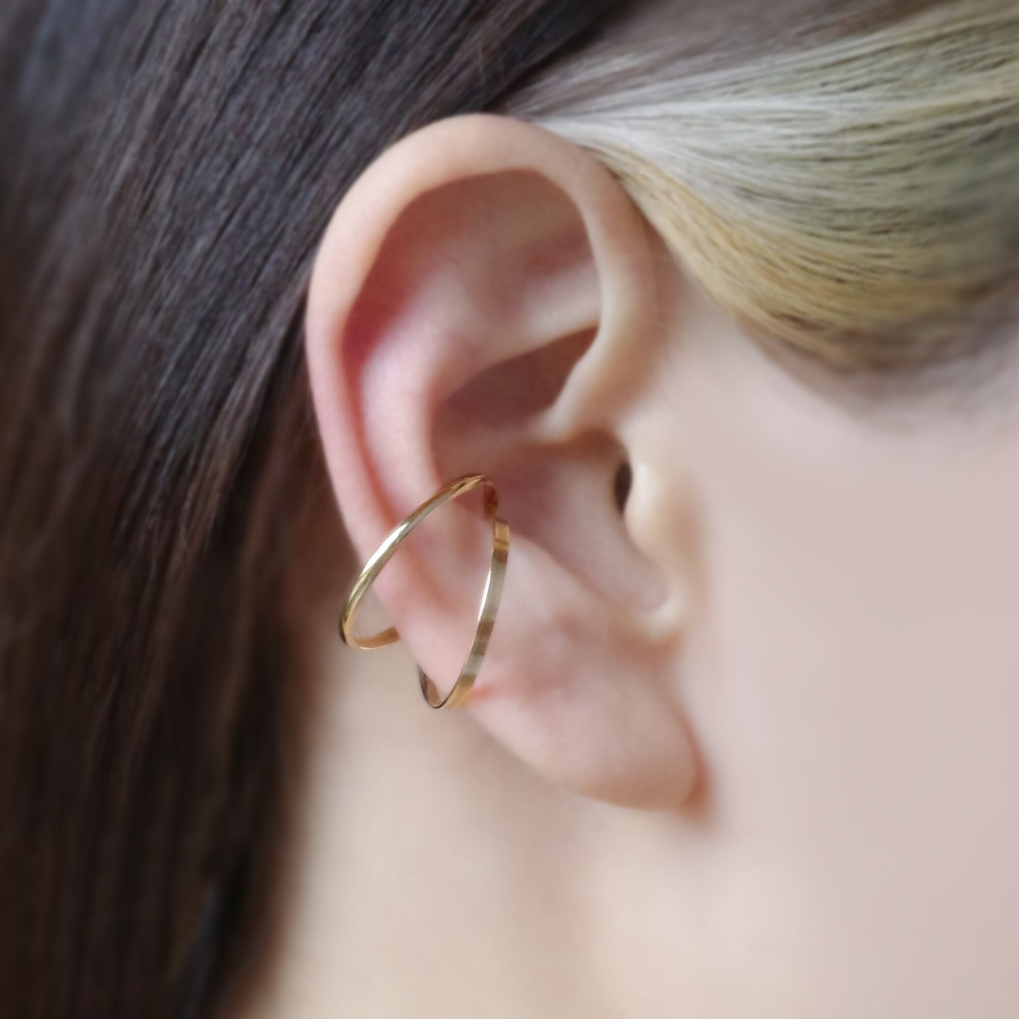 イヤーカフはイヤリングよりも装着感が自然で、ピアスの穴の空いていない方にもお薦めです。左右どちらの耳にもお好みで装着できます。マスクとの相性もとても良いです。